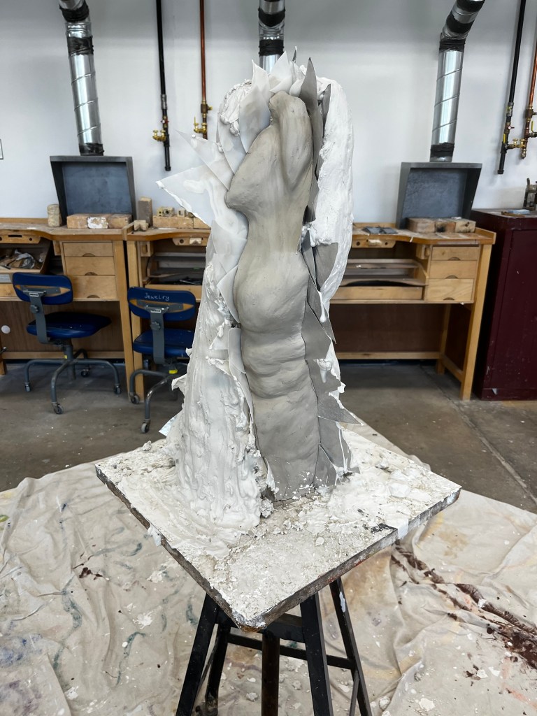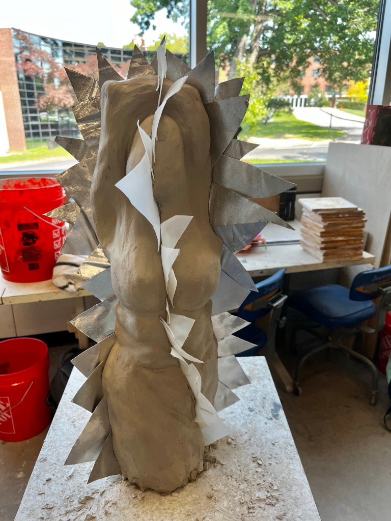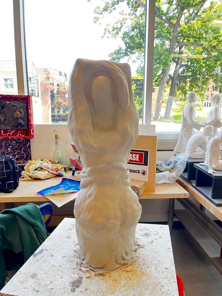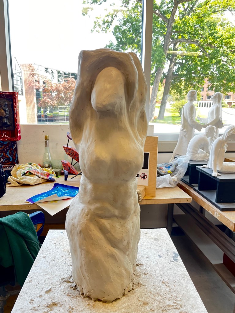 The first project we are working on in sculpture is a large torso. We are all supposed to make either a male or female torso that is at least 2 feet tall out of clay. The position and body type of the torsos that each of us are making is completely different. It is a great opportunity for each of us to show our different talents and artistic styles.