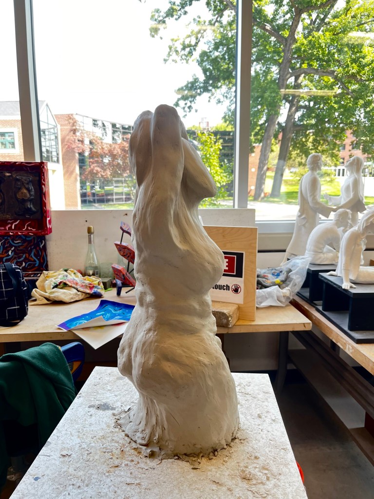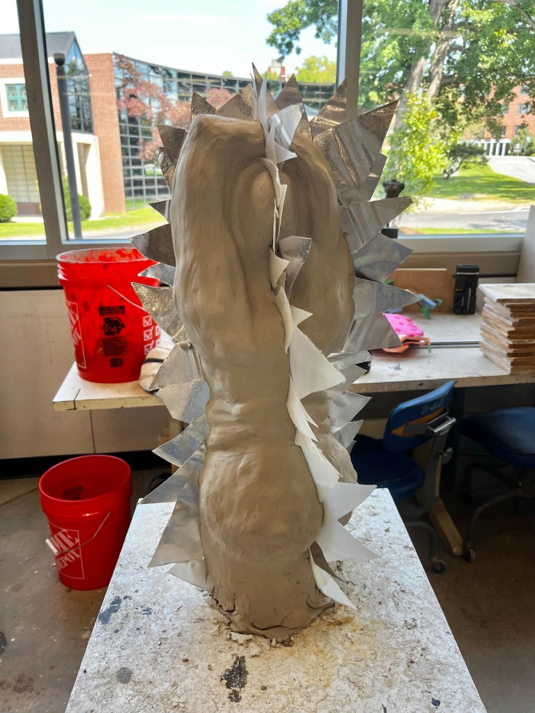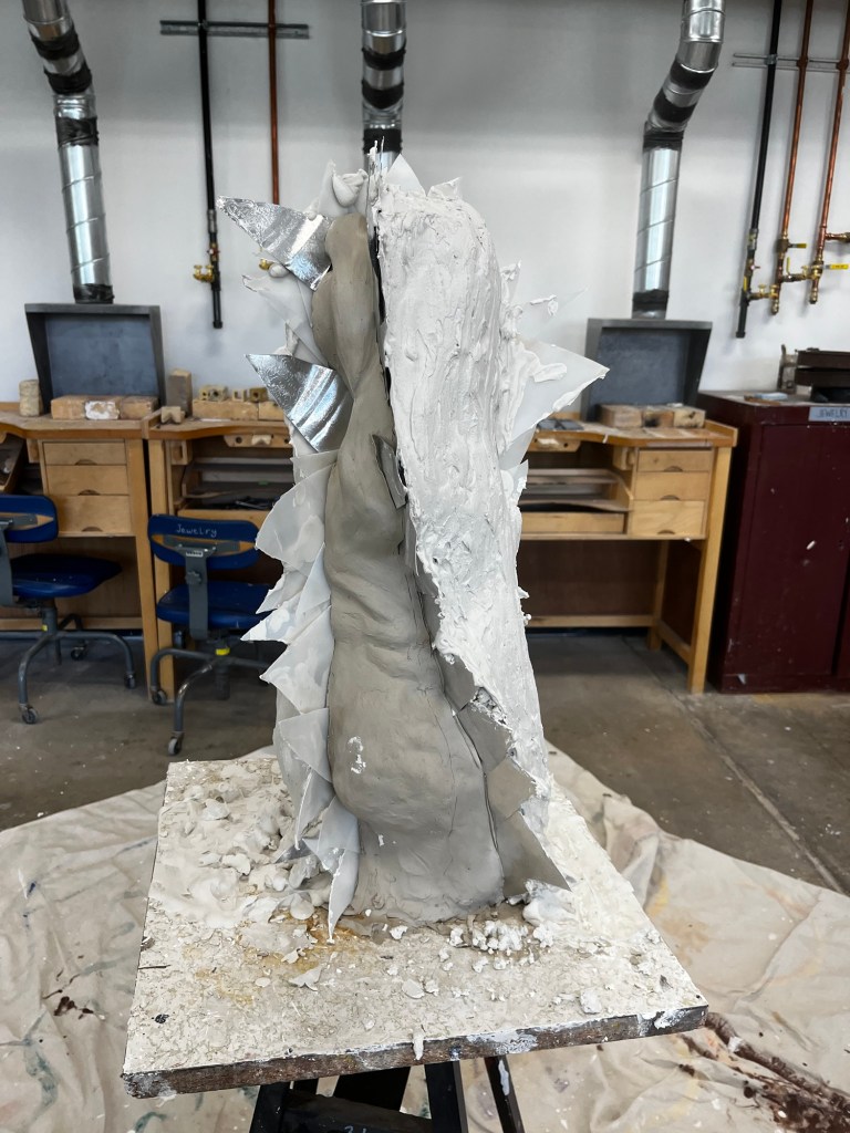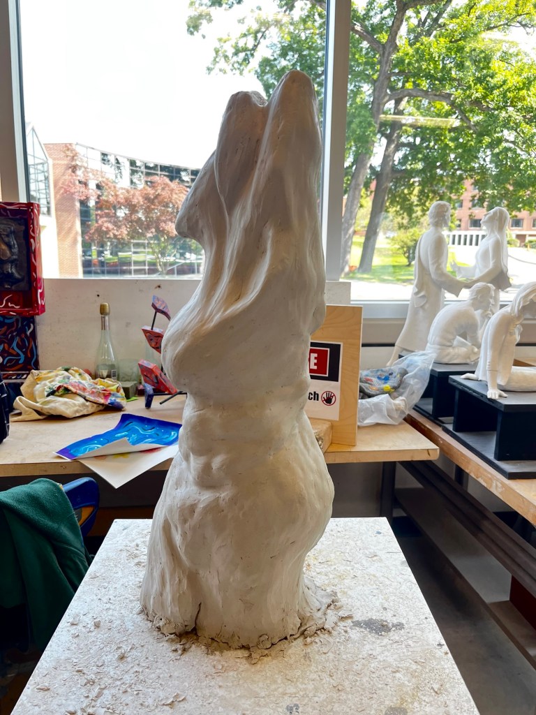 The first project we are working on in sculpture is a large torso. We are all supposed to make either a male or female torso that is at least 2 feet tall out of clay. The position and body type of the torsos that each of us are making is completely different. It is a great opportunity for each of us to show our different talents and artistic styles.
