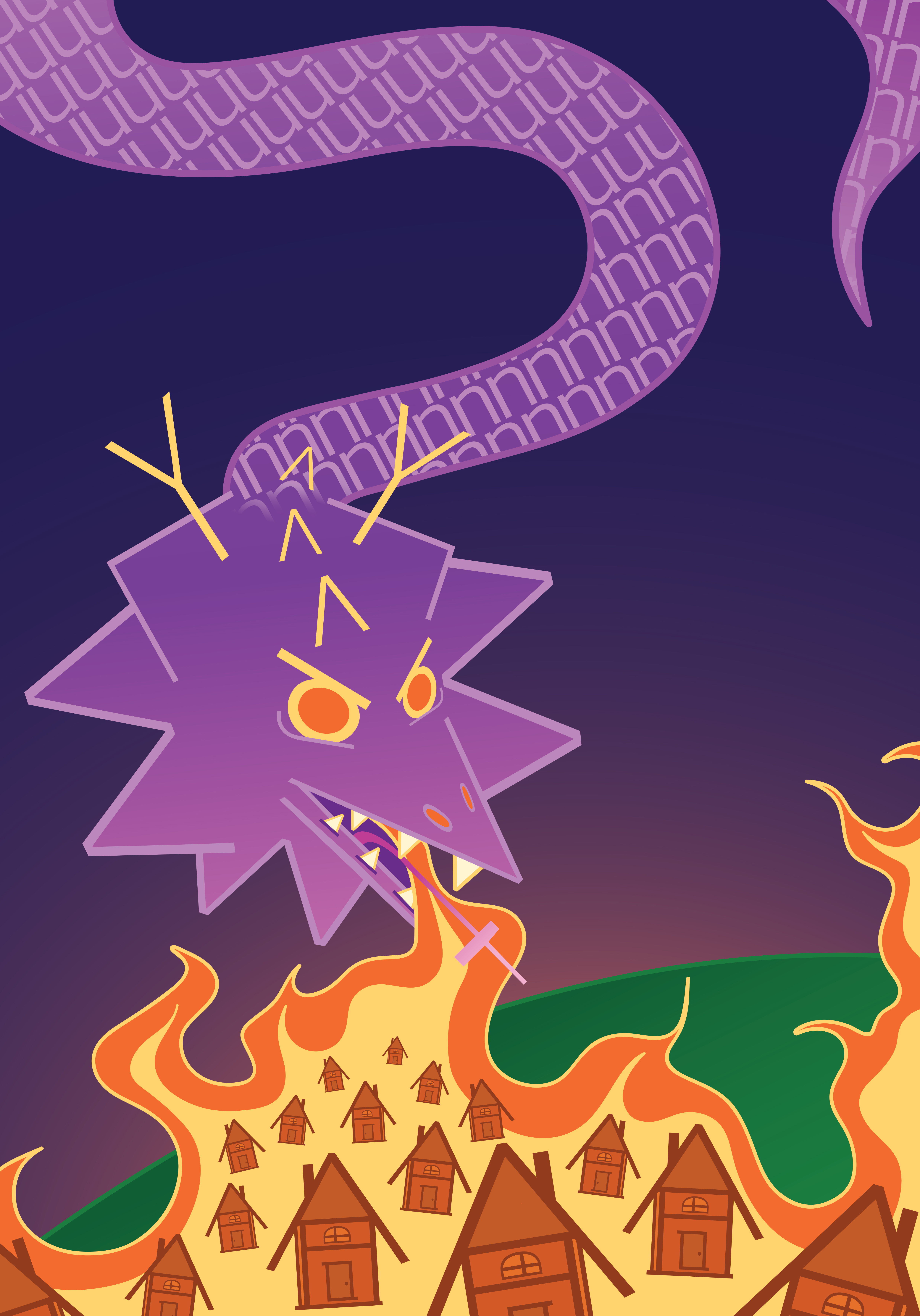 I knew I wanted to lean into that storytelling aspect with a mythical feel so I to decided to make a dragon, which many may agree is a very mythical creature. I felt a fierce dragon pictured with fire spewing out of its mouth would be cool to create but I was unsure as to what the dragon should be burning. However, during a class critique it was suggested that it be a little village made out of letters feeling the dragon’s wrath. I thought that was such a good idea and led me to my final design for the assignment. It was fun trying to figure out which letters would be best for each part of the dragon’s body and the little houses, and I would just keep scrolling through my Adobe fonts until I found one that worked best. I did make the mistake of building the entire poster in RGB mode, which was no good since the competition required CYMK if it was chosen to be printed. It was no big deal though as I just made sure to convert to CMYK, and then I adjusted the colors and saturation to make the colors vibrant. I am super happy with the final poster and enjoyed the process of creating it.