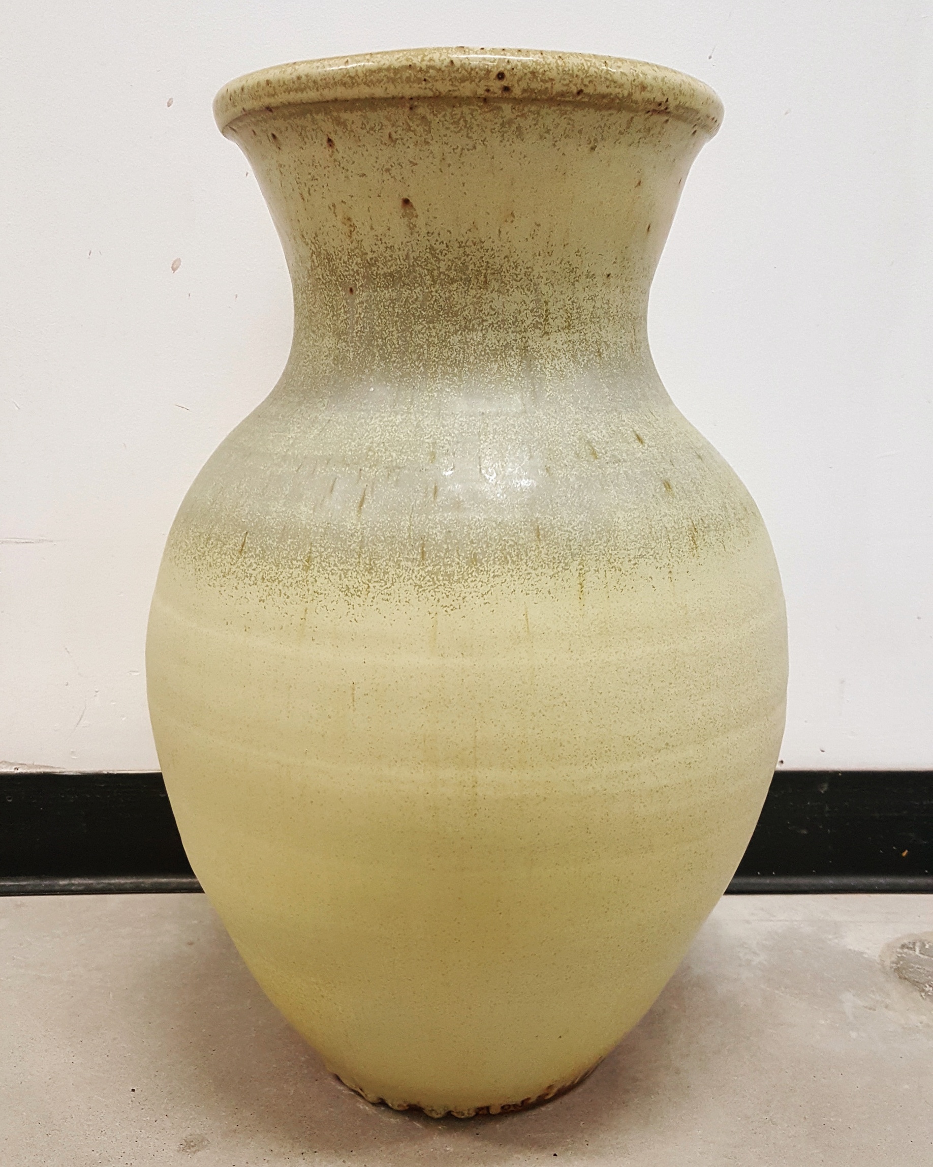 Two weeks ago now, I promised I’d post a photo of a large floor vase that, shortly after my post was published, would be unveiled from the gaze kiln, and sure enough, a promise is a promise! Here’s what I saw after swinging the kiln door open: