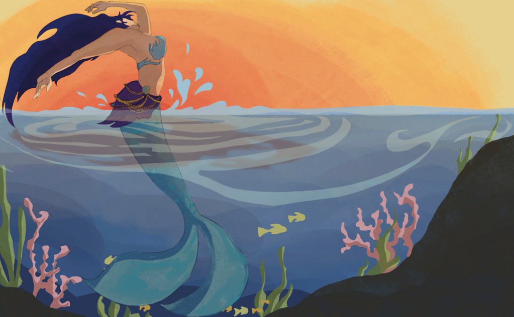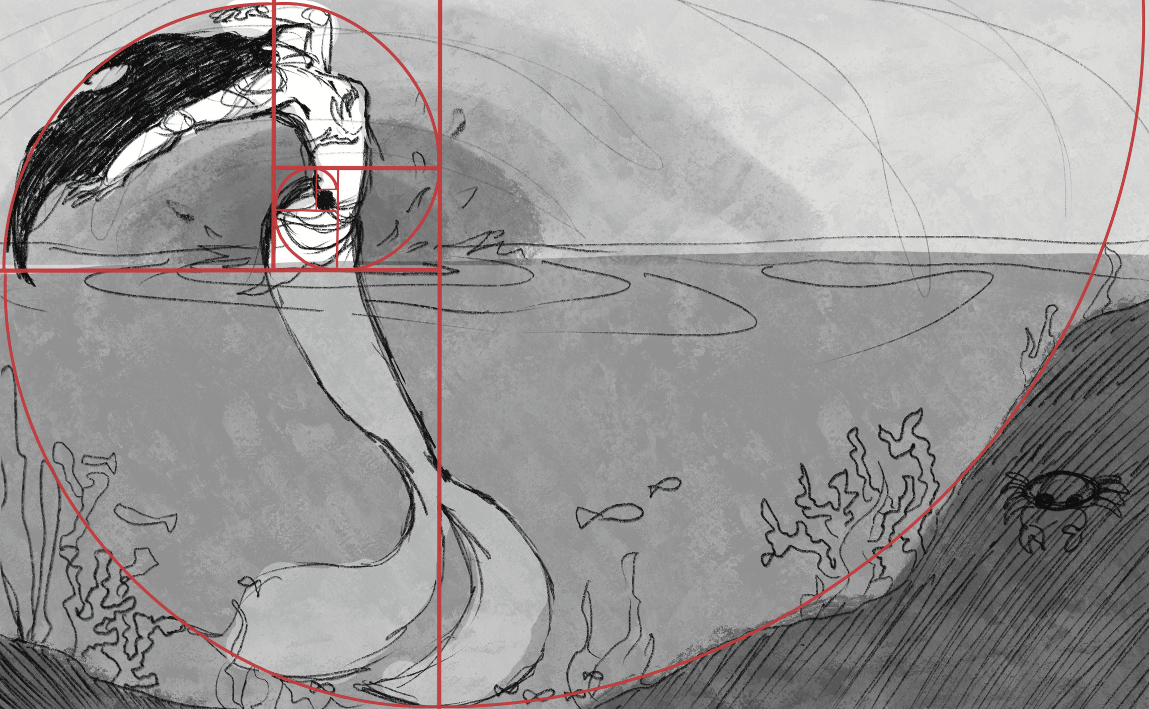 Using the Golden Ratio armature I used the guide to map out the movement of a mermaid jumping out water. I wanted this piece to have a contrasting tone to the previous one, so I incorporated warmer and brighter colors.