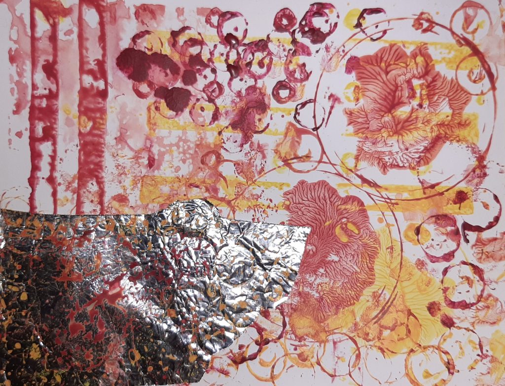 I ‘therapized’ myself! I sat on my bed and I let myself go crazy. I put out some paint and one by one, I took every item and stamped it onto a piece of paper until I was content.