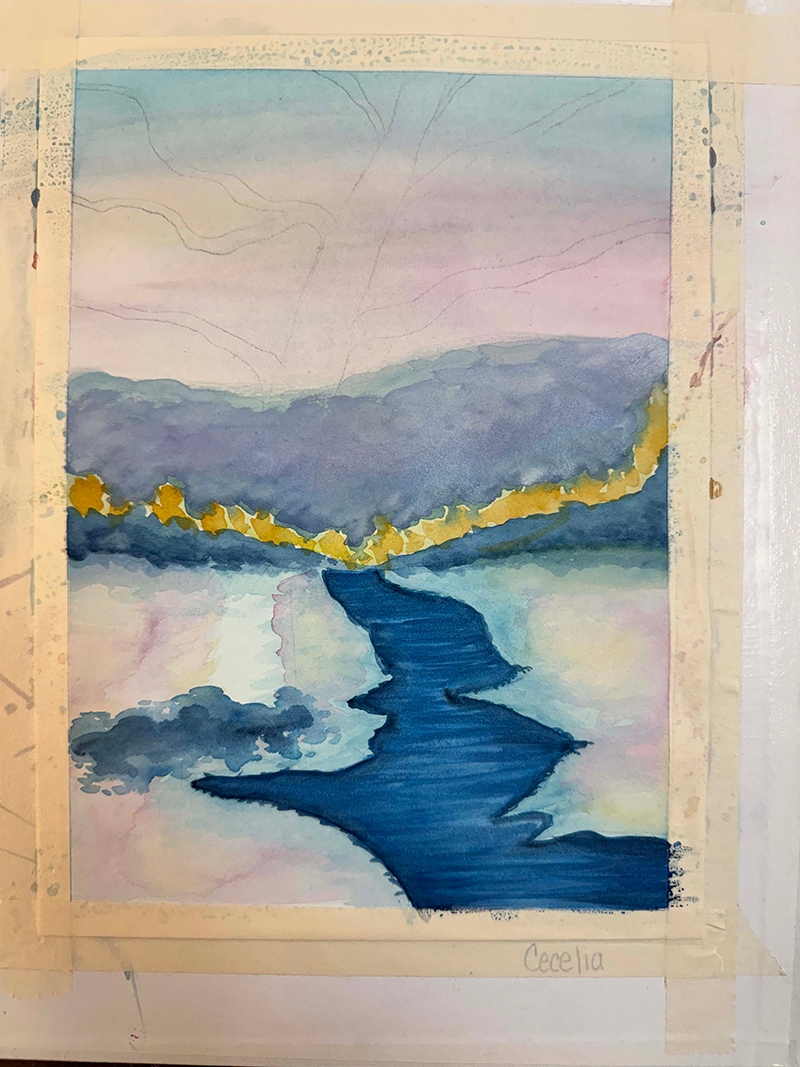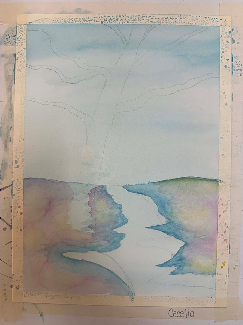 I don’t know about anyone else, but I have been spending some much-needed time with my family and focusing on some of my hobbies outside of school. I love to read, so I have been reading a lot, and I’m excited to crack into the books I got for Christmas. I have also been spending some time in my art class, which I’ve been taking since I was in grade school. For my most recent project, I am painting a wintery landscape with watercolors, which I don’t normally use that often. I thought it was time to challenge myself, since I haven’t really worked with this medium in a while. Here are some of my progress photos and thoughts as I have progressed in this project.