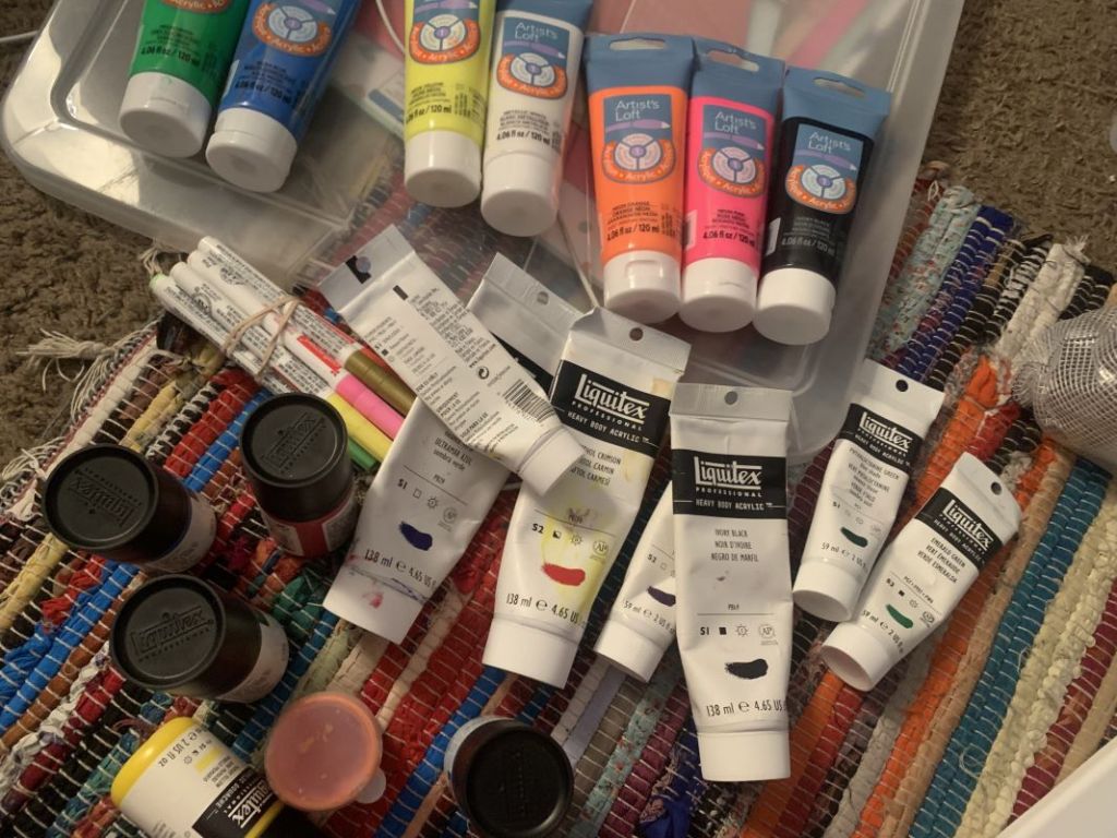 As an art student, I have a ton of art supplies left over from old classes and projects and I never know what to do with all of it (shown to the right and bottom of the page). I hate the idea of wasting is so I figure there are two possibilities that I would enjoy. Either donating them or creating my own new pieces with whatever material I decide to put together. In my case I have lots of acrylic paint, canvases, markers, and stickers.