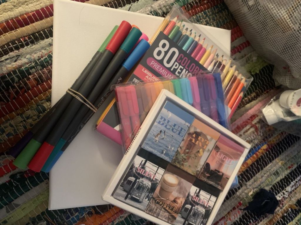 As an art student, I have a ton of art supplies left over from old classes and projects and I never know what to do with all of it (shown to the right and bottom of the page). I hate the idea of wasting is so I figure there are two possibilities that I would enjoy. Either donating them or creating my own new pieces with whatever material I decide to put together. In my case I have lots of acrylic paint, canvases, markers, and stickers.