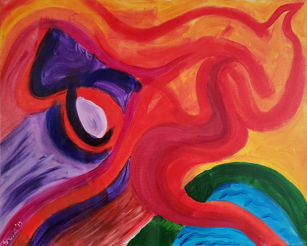 Turns out, I had been doing art therapy for myself for quite some time and didn’t know it. I had been doing free association painting. It let me channel the emotion safely out of me, it let me express what I was feeling when the words wouldn’t come for my diary, and I still find use for it today.