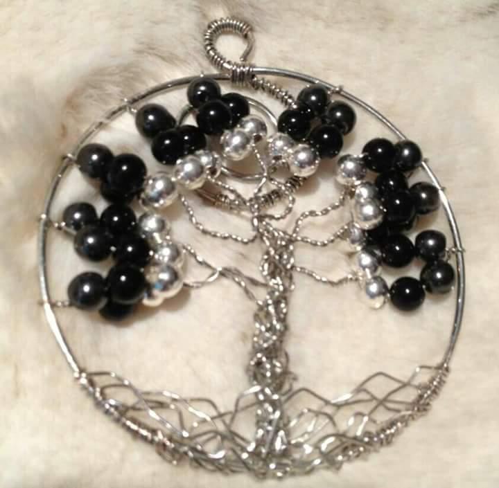 black and silver tree of life pendent