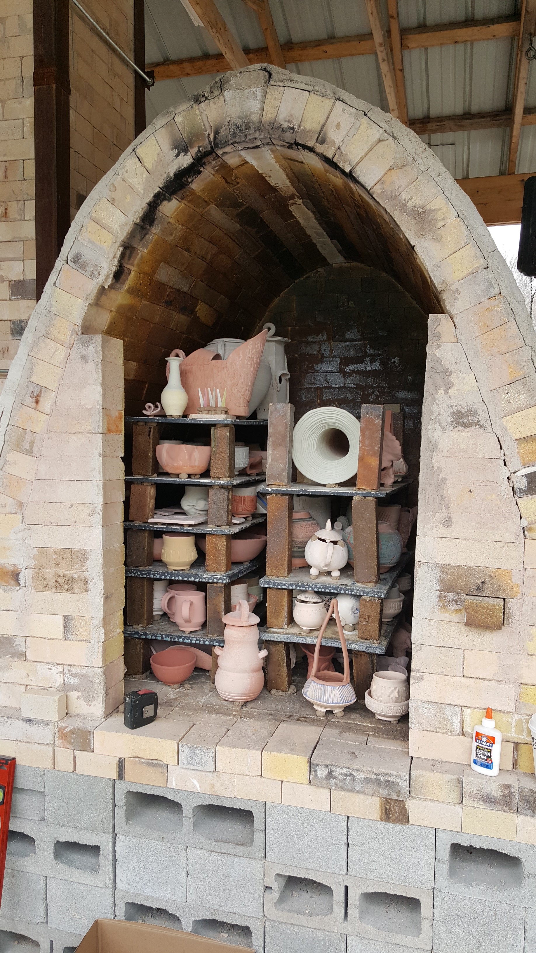 Until the kiln door is bricked up, here the ware will sit! Cross your fingers and say a prayer to the kiln gods for us. Next weekend is going to be a good one!