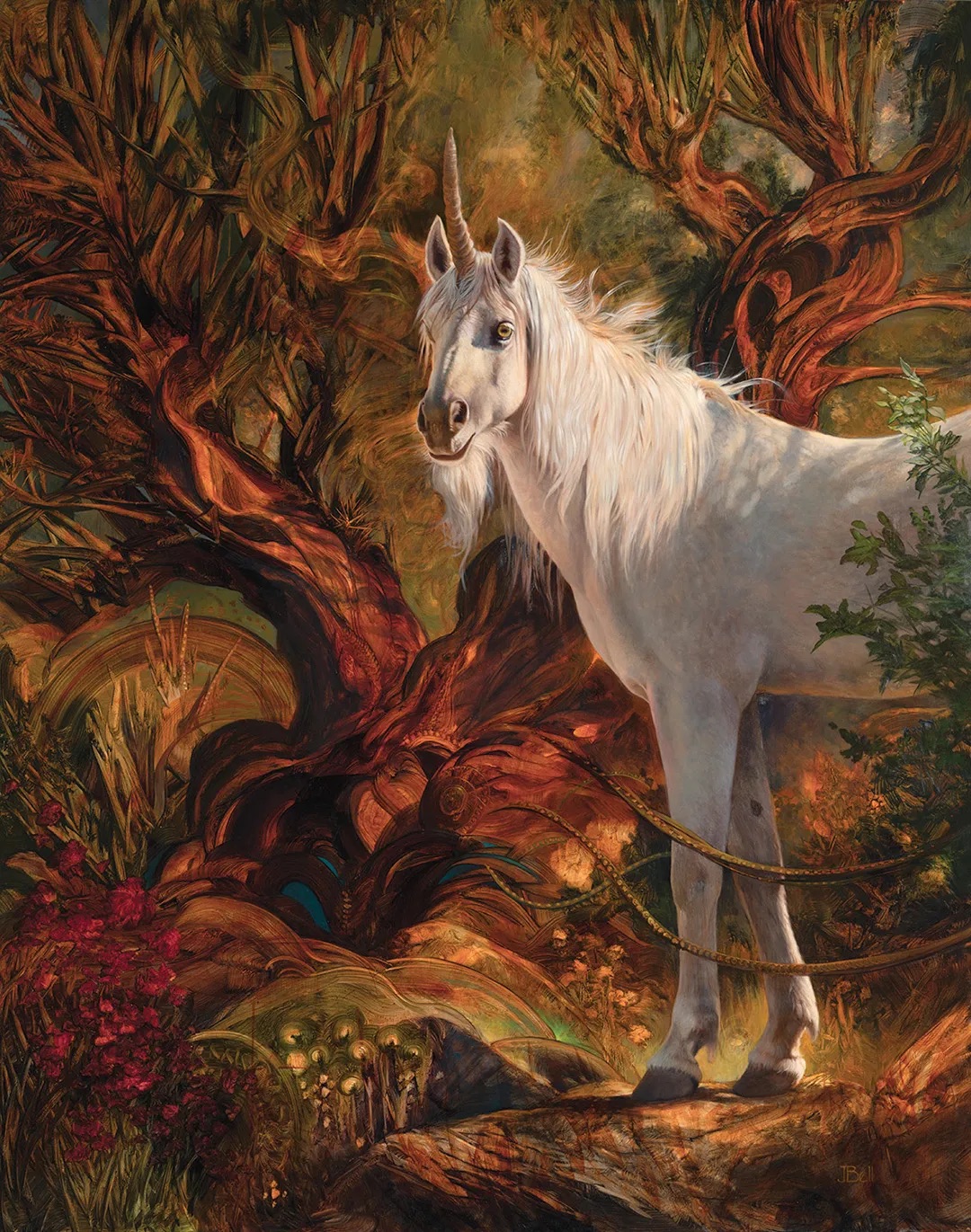 Once I was done with the carving process and I took the piece home, I let it sit for the rest of the night. Since I had just washed it off, it still needed time to dry off and harden fully. The next day, I started painting it. Since the project was to reference a well-known artist from the 20th century, I tried to paint it in the style of Julie Bell’s Good Fortune Unicorn piece, pictured below.