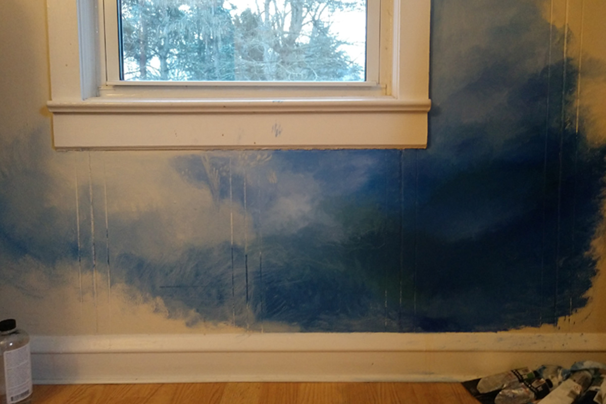 Oh! and I accidentally got paint on the wall behind my easel, so I decided to roll with it. I’m not sure exactly where I am going with this but it would be fun to have a Moby Dick themed wall in my studio so this may become a sea-scape.