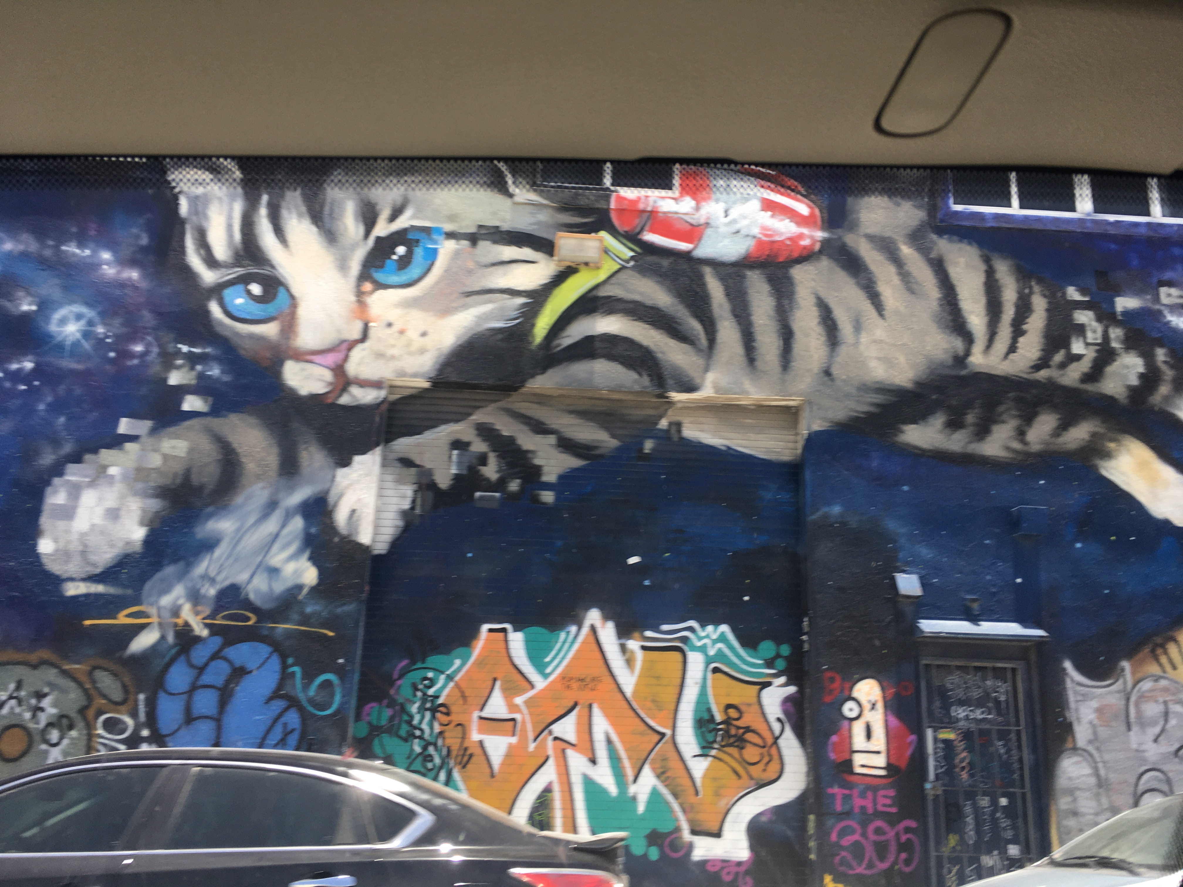 Seeing these massive murals from the car window felt almost like a dream. Driving through it was truly inspiring! Knowing that street art and graffiti are historically not commonly respected in the art world, this was such a physical representation of how wrong that thinking is. There was such a vast variety of styles and subject matter, so everyone in the car (even the two year old!) was interested in seeing these murals.