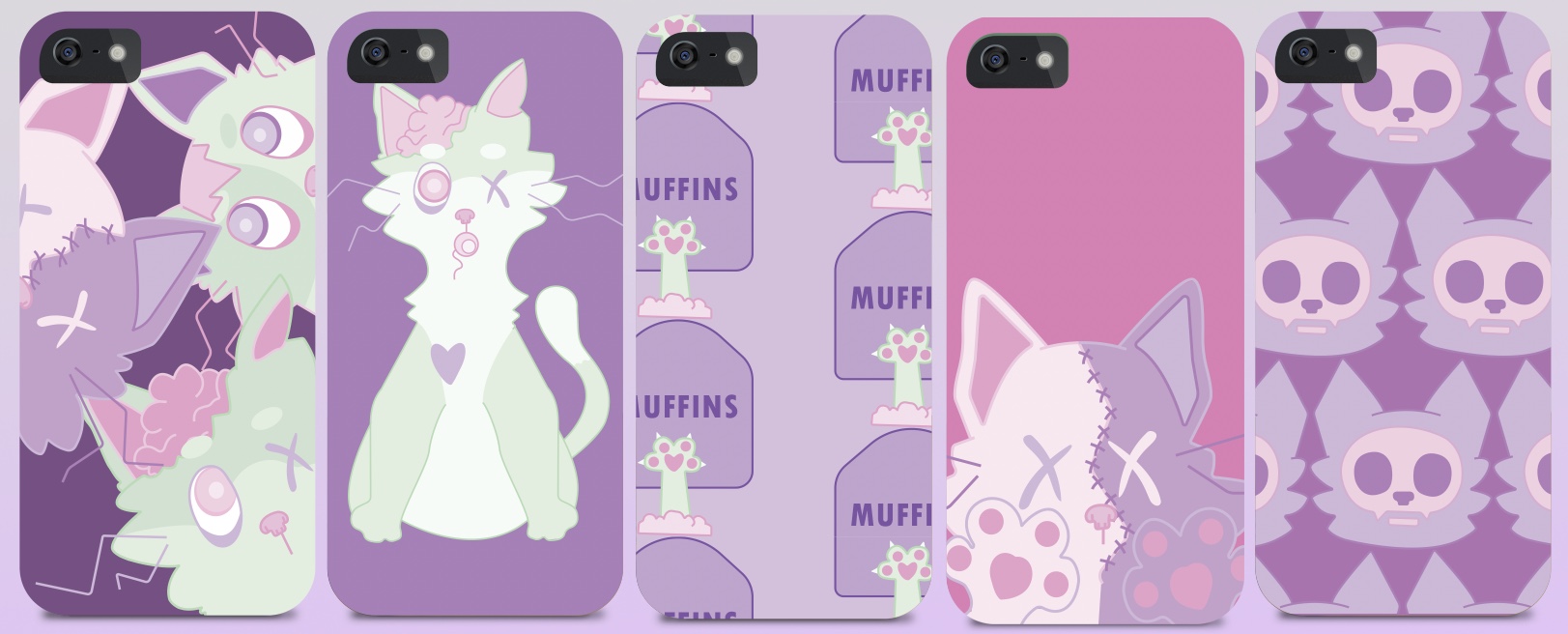 Wacom tablets definitely have a learning curve when you first begin to use them to draw because you need to get used to drawing without really looking, since the lines are translated onto a screen, so I knew I wanted to practice using it for this upcoming semester. I decided to revisit an old character I had created in my freshman year of college for a project where we had to create a set of phone cases in my Digital Design course with Professor Sue Jenkins. I was so proud of this project when I first created it and thought it would be fun to see how my style had improved. Pictured below is the original style and graphics I had created, with the character second to the left being the one I decided to redraw.